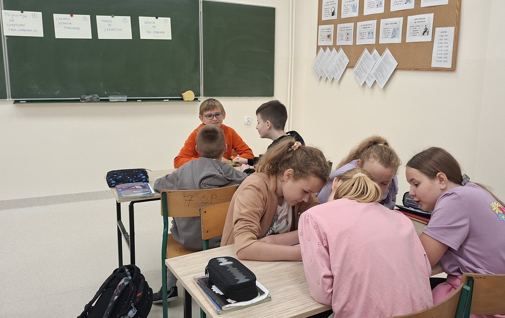 Wklasie V podczas lekcji uczniowie rozmawiali nt. Czym jest zdrowie psychiczne? Poznali i zrozumieli kluczowe kwestie związane ze zdrowiem psychicznym, nabyli umiejętności definiowania stygmatyzacji oraz wypracowywali postawę akceptacji i zrozumienia dla osób z chorobami psychicznymi.