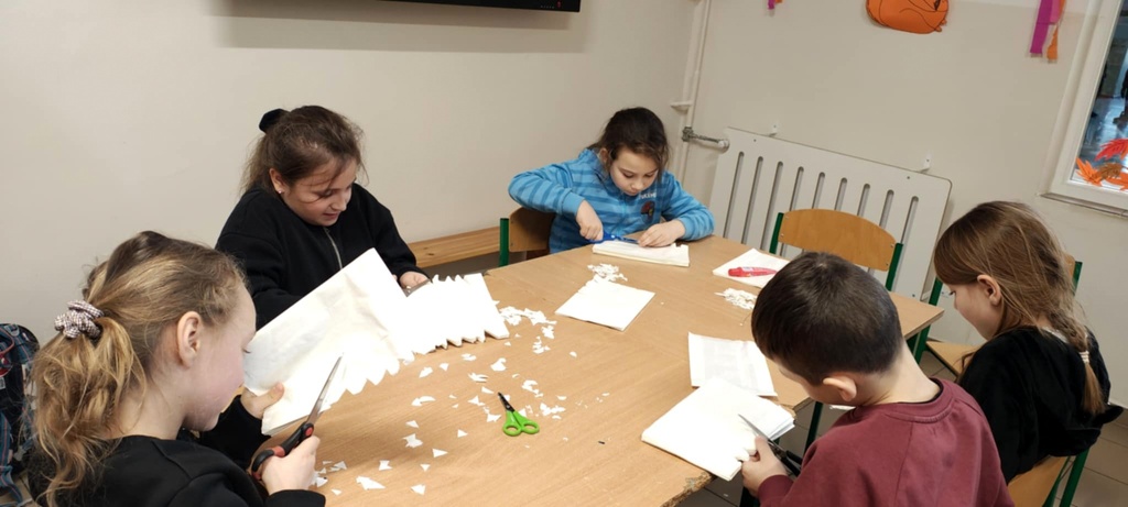 Z okazji zbliżających się świąt Bożego Narodzenia , w świetlicy odbywały się zajęcia plastyczne – dzieci wykonały ozdoby świąteczne : lampiony, łańcuchy, gwiazdy i stroiki.