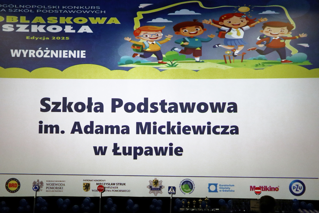 12.02.2026r. w Multikinie w Gdańsku odbyła się Finałowa Gala Wojewódzkiego Etapu Ogólnopolskiego Konkursu ,,Odblaskowa szkoła’’. W uroczystości wzięli również udział przedstawiciele Szkoły Podstawowej im. Adama Mickiewicza w Łupawie. A wszystko za sprawą  przygotowanego przez uczniów i nauczycieli filmu, zatytułowanego „Noś odblaski! Zostań ambasadorem dobrego przykładu”.