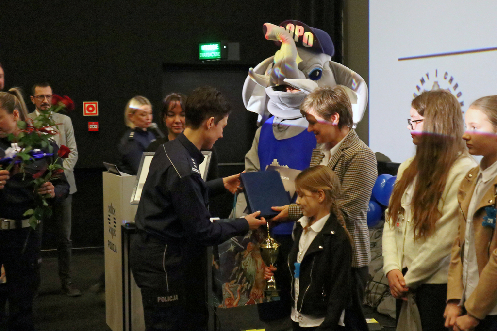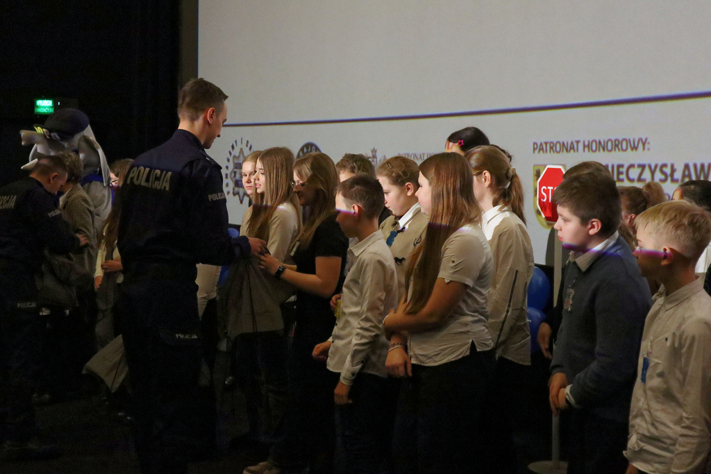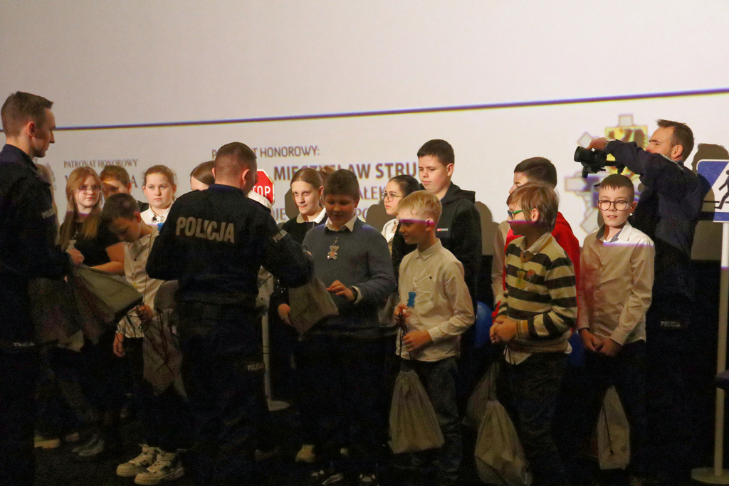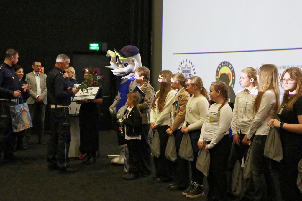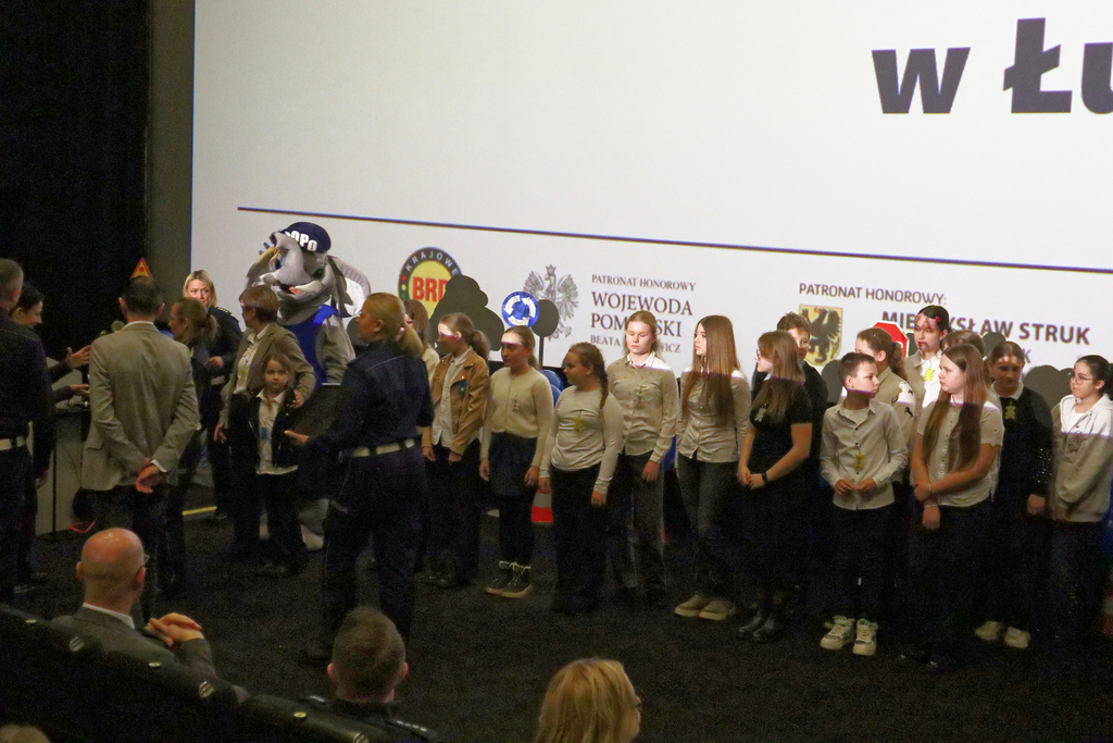 UCZNIOWIE I NAUCZYCIELE ZE SZKOŁY PODSTAWOWEJ W ŁUPAWIE ODBIERAJĄ NAGRODY PODCZAS POMORSKIEJ FINAŁOWEJ GALI KONKURSU „ODBLASKOWA SZKOŁA”