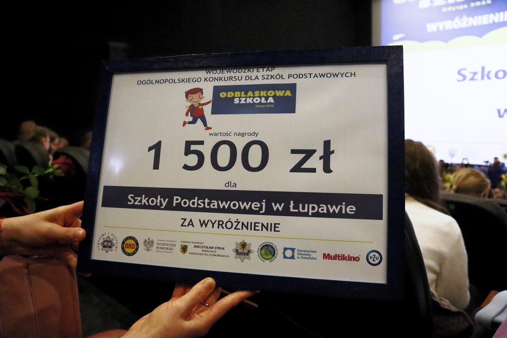 Strona główna Aktualności UCZNIOWIE I NAUCZYCIELE ZE SZKOŁY PODSTAWOWEJ W ŁUPAWIE ODBIERAJĄ NAGRODY PODCZAS POMORSKIEJ FINAŁOWEJ GALI KONKURSU „ODBLASKOWA SZKOŁA”