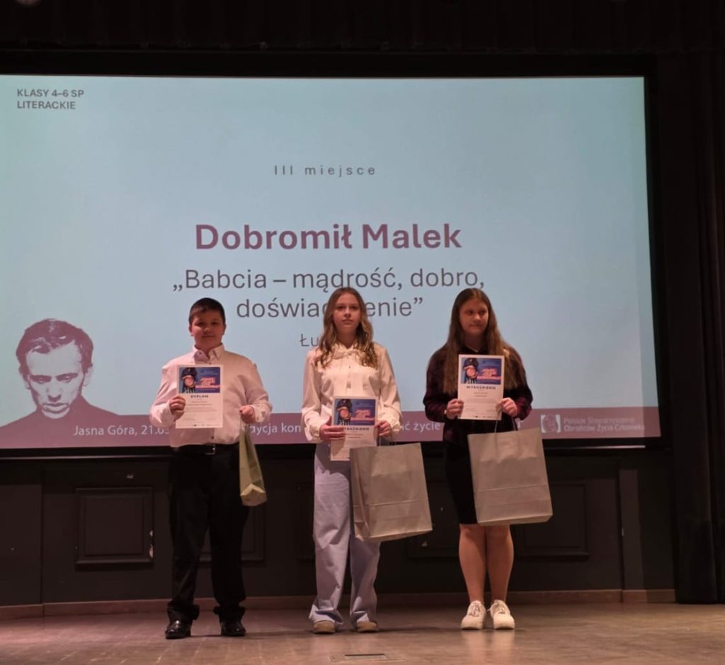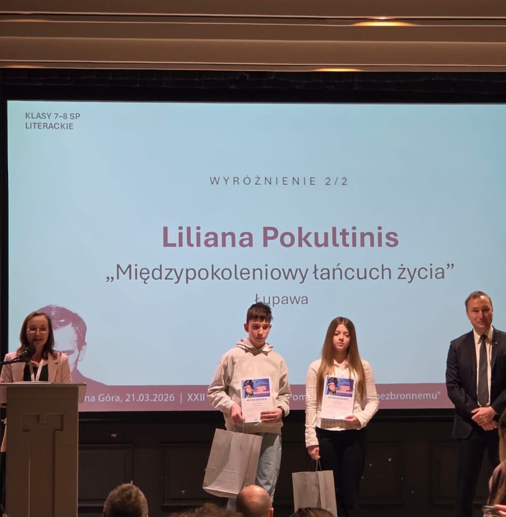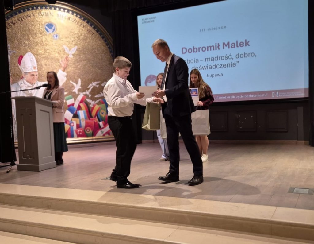 21 marca 2026 roku w Częstochowie odbyło się uroczyste wręczenie nagród zwycięzcom XXII Ogólnopolskiego Konkursu dla Młodzieży „Pomóż ocalić życie bezbronnemu”. Wśród dzieci nagrodzonych w kategorii literackiej znaleźli się uczniowie ze Szkoły Podstawowej w Łupawie.
